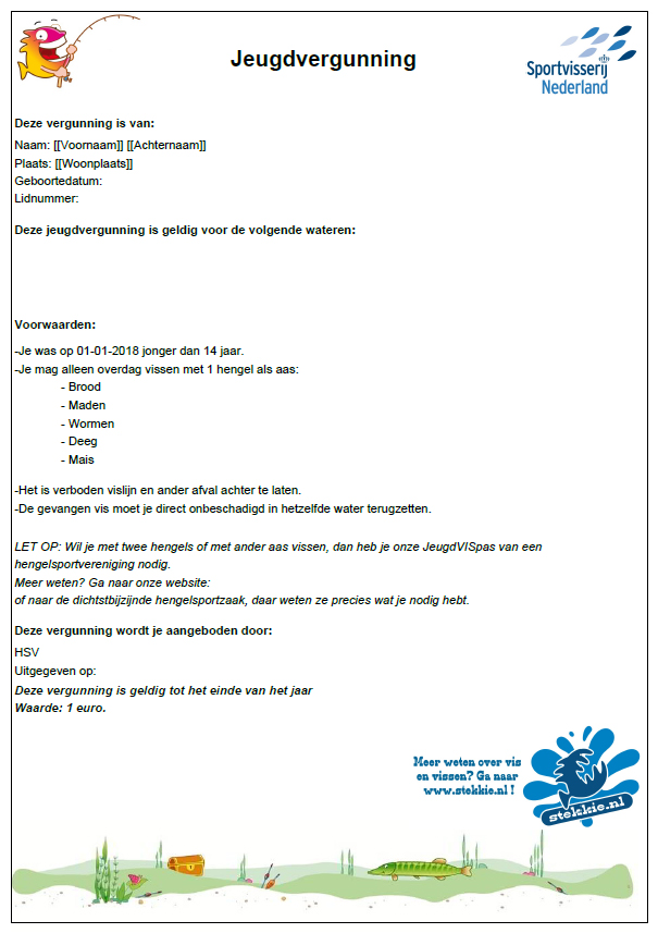Deze gratis jeugdvergunning is geldig voor de volgende wateren: [zelf aanvullen]